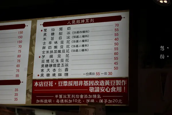 菜單有人氣招牌系列、半舊系列(古早味中有創新的東西)。第一次來還是以招牌為主吧!