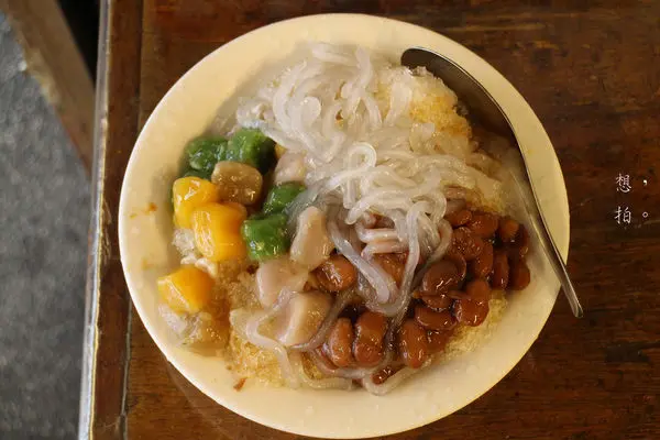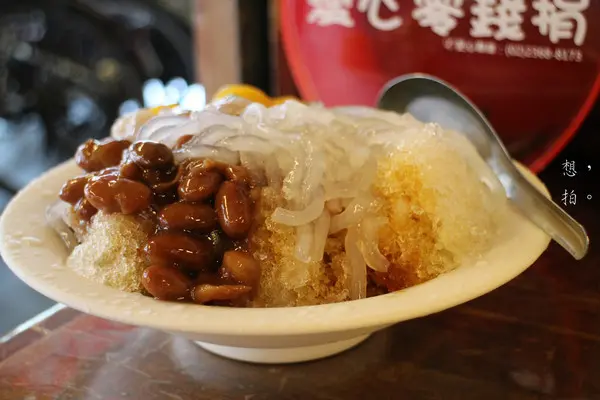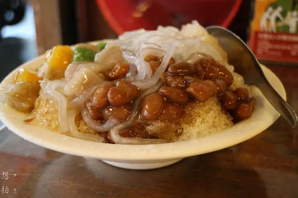 黑糖刨冰裡面加了粉條、綜合芋圓、大紅豆、珍珠。
