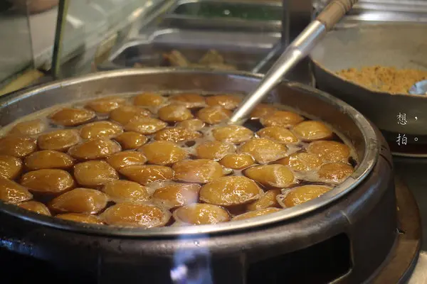 黑糖燒麻糬 一份兩粒,下圖是在點餐檯前,麻糬在黑糖水裡滾的照片。很誘人購買~