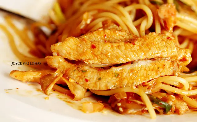韓式口味入菜,香鹹可口,辣中帶甜,豐富的泡菜增添味覺層次,均勻包覆著麵條,辣得很開胃呢