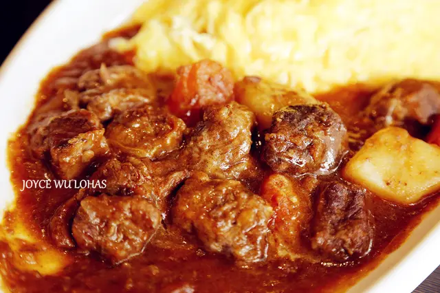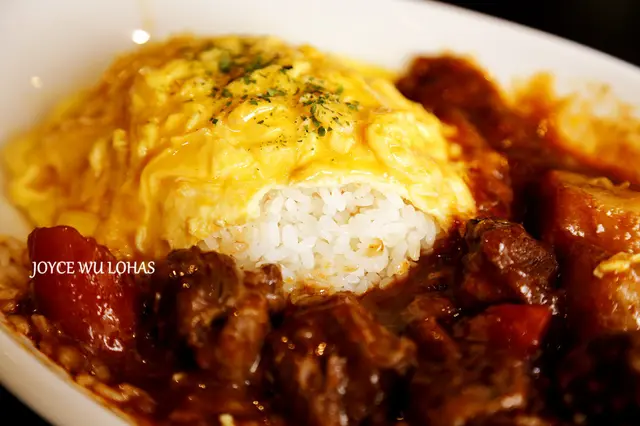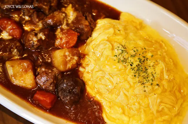 淺深各半,濃烈的紅酒牛肉與優雅蛋包飯的搭配就像是日夜轉換的定格,勾引著大家的味蕾