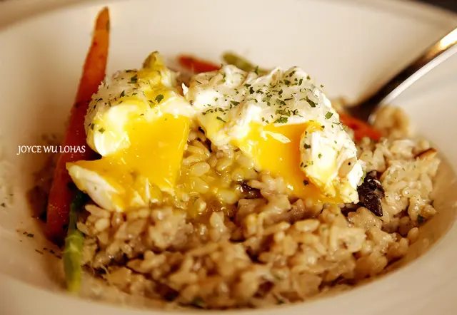 "牛肝菌菇燉飯佐水波蛋"(蛋奶素) $260