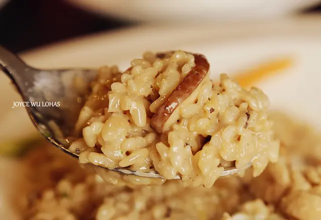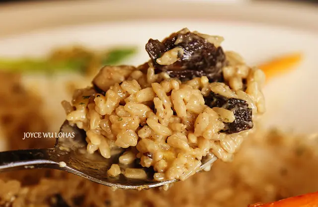 燉飯煨煮至全熟,口感軟中又彈牙!白醬交織松露與濃烈牛肝菌香氣勾引著味蕾,讓人一口接著一口無法停!