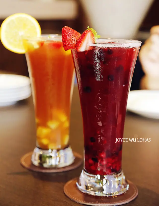兩種不同風味的水果茶各有千秋,鮮果茶酸酸甜甜的口感中有著茶香回甘