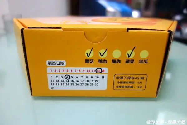 盒子的側面上清楚的標示口味、製造日期、保存方式。