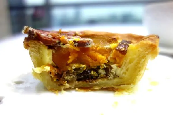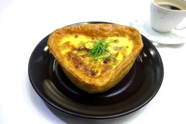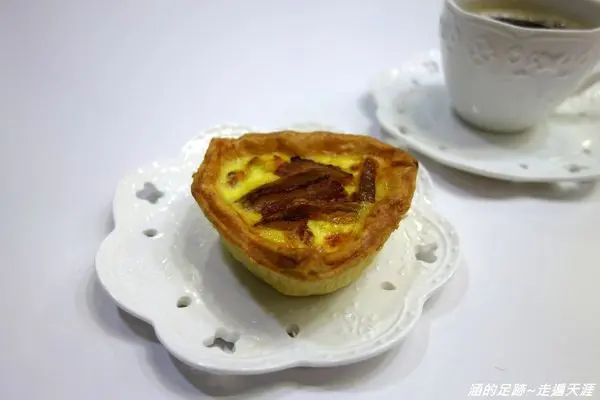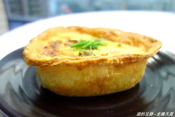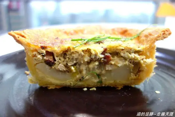 派皮酥脆卻不會覺得油膩,內餡的部分有許多臘肉與洋蔥丁,還加了黑胡椒來提味,帶點微辣,而奶油餡的底下是大塊的馬鈴薯,剛好中和了上面餡料的味道,讓整個派的味道不會過於重鹹與油膩,小涵非常喜歡。