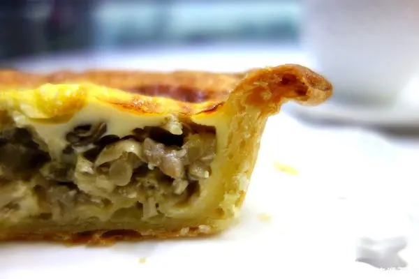 切開以後裡面是滿滿的內餡,這款眷村風湖南臘肉鹹派是洛林鹹派的改良版。