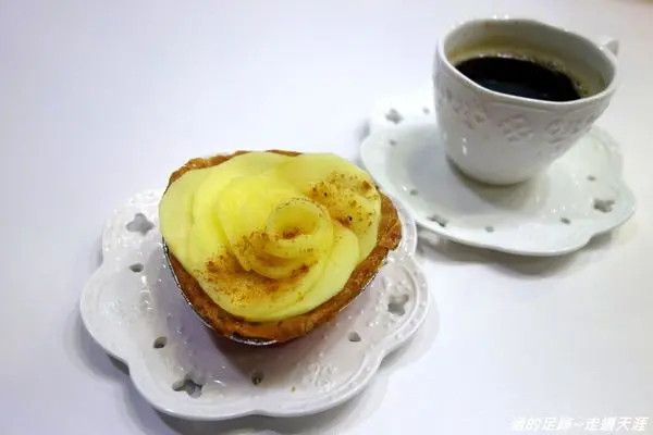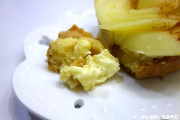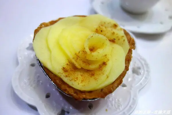 鬆軟的派皮內是香甜好吃的法式杏仁奶油餡與卡士達醬,搭配新鮮的蘋果片,小涵覺得很好吃。