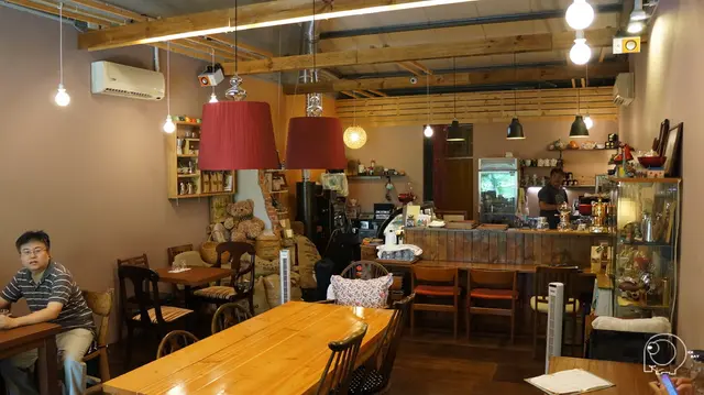 在一進門的左手邊有一張桌子與兩張沙發,這個位置很適合一個人或是兩個人打發一個下午,在這個位置往左看有一種在山上咖啡廳的感受,往右看有一種在日本的咖啡廳的感覺,裡面的裝潢跟老闆娘都帶給我一種好像在日本的錯覺.