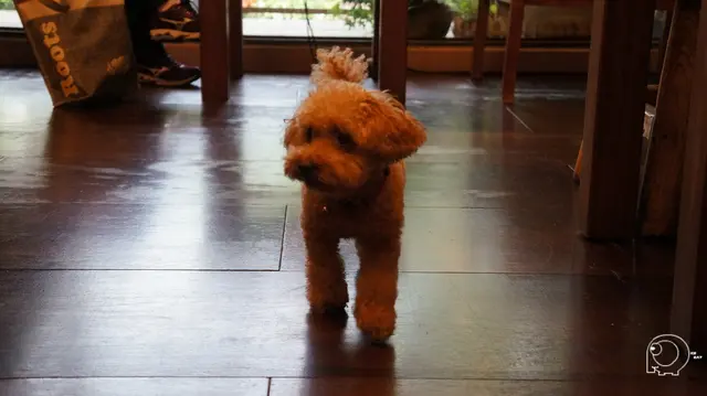 接下來繼續來看可愛又神經質的店狗吧,話說那天美姬行程滿檔,不知道是不是因為來到了"慢動作",老天爺希望大家有時候都能慢下來,所以特地下了一場大雨,讓我們在這裡待了三個多小時,這場大雨還夾雜著不時的閃電與雷聲,只要一打雷,那店狗就衝到門口,然後一直狂叫,一整個下午最忙碌的就是那隻小狗狗了.忙到耳朵都飛起來了,中間老闆娘很溫柔像跟小孩說話似的跟狗狗說,是打雷,不要怕......,但是牠還是好忙碌的衝來衝去,後來老闆還把牠帶到外面去談心聽雨聲.