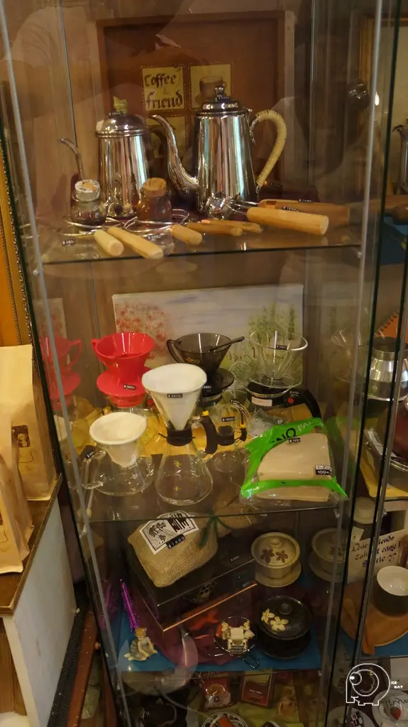 除了咖啡豆之外,店內也有販售一些手沖咖啡的器具,老闆還有推薦美姬一個來自德國手動磨豆機,老闆說在美國買會比較便宜喔,還有手動磨豆機又稱為膝上型磨豆機. 美姬也同樣問了,蛤?因為手動磨豆機基本是用膝蓋夾著使用的,這就說明了之前美姬買了一個手動磨豆機,每次喝咖啡都有粒粒皆辛苦的感覺,還沒喝到咖啡就已經滿身大汗了,有機會再來找這個老闆推薦的磨豆機吧.