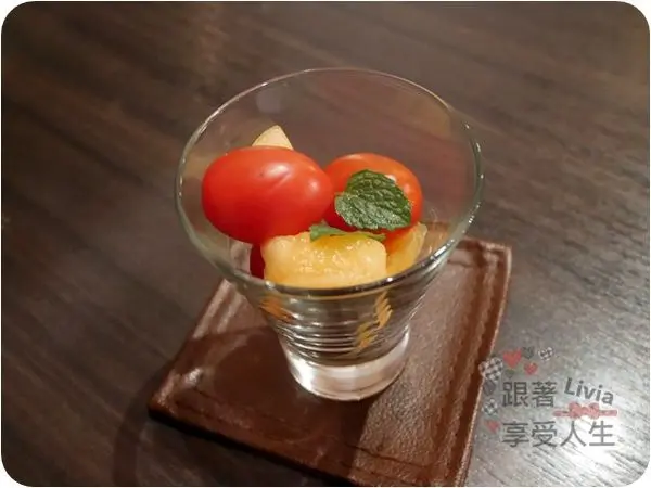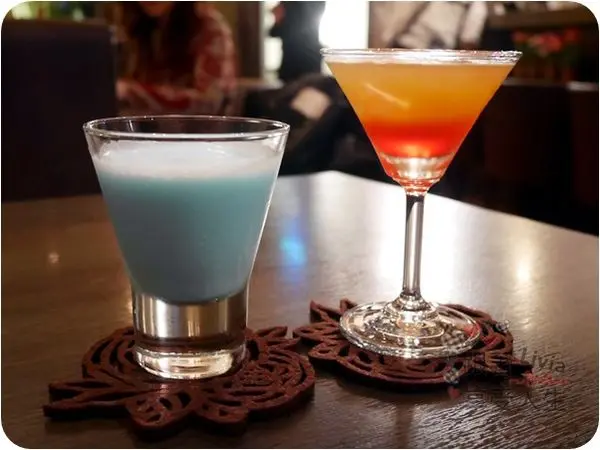 橘色這杯帶有一點酸甜口感,餐前來上一杯,很開胃阿!