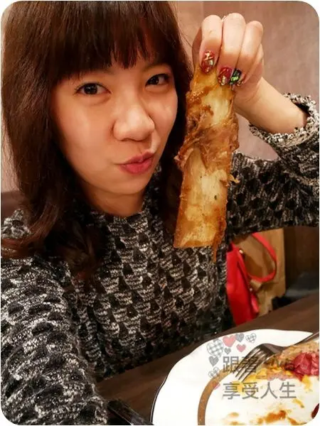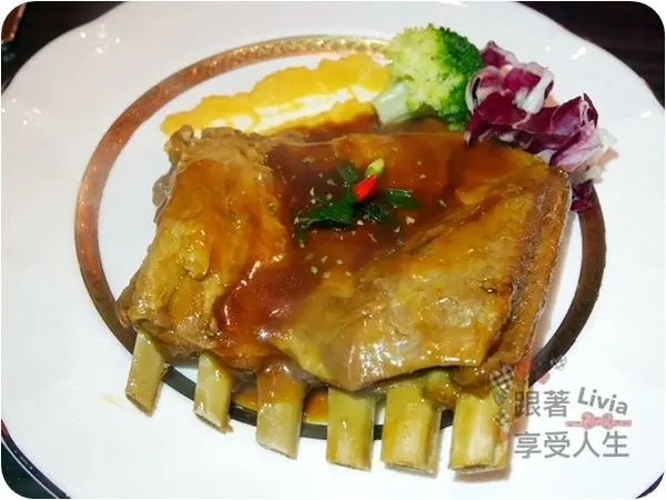 一大塊的牛小排帶骨下去烹調,餐點上桌時,