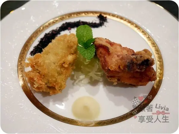 接著是搭配烏龍麵的小炸物拼盤中,這炸牡蠣跟雞塊,外皮酥脆,內餡多汁飽滿,