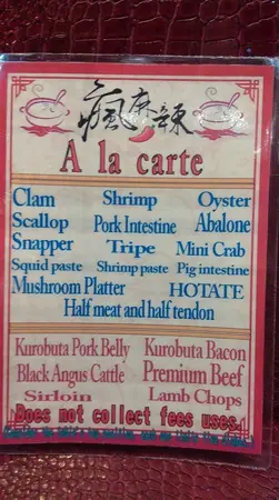 有曼波魚、水晶魚、鮮蝦、扇貝、干貝、螃蟹、蚵仔、花枝、小墨魚等多樣化選擇,