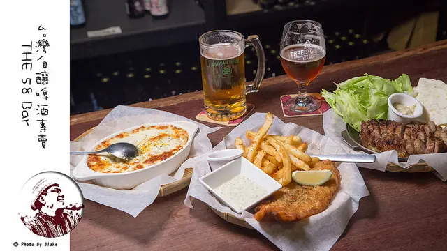這一家啤酒吧英式小酒館的設計風格,但在酒吧裡面蘊釀著一個台灣精釀啤酒夢,從他們的酒單就能有深刻的感受,這算是台灣少數有著極為豐富的台灣精釀啤酒吧,可以從啤酒去瞭解在地啤酒廠的精釀夢,重點不只是一間小酒吧更是一間特別的美食餐廳,英式料理看起來很點單,卻做得很好吃,有兩家分店,一家位於西門町一家位於中和四號公園旁,這篇要介紹設西門町的這家The 58 Bar。