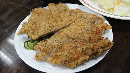 新鮮溫體雞腿肉,經過獨門醃料醃上一天入味後沾地瓜粉酥炸,外皮酥