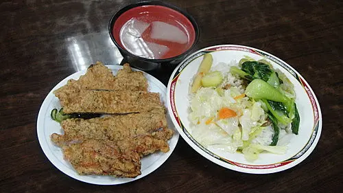 的古早飯,還有蘿蔔清湯,一份90元的排骨飯,是40年來人氣不墜的熱賣