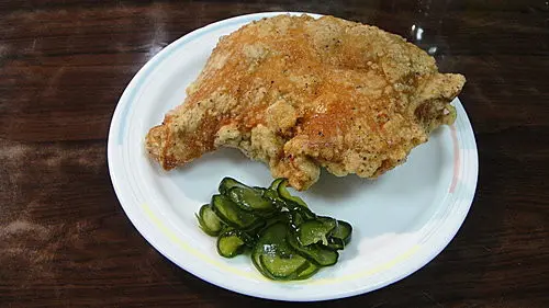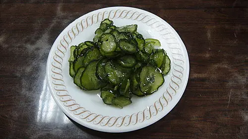酥脆的排骨配上以醋和砂糖醃過一天冰鎮後小黃瓜一塊兒吃,不僅解膩