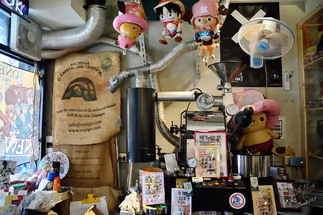 店內外不僅有滿滿的航海王(海賊王、ONE PIECE),一進到店內也見到咖啡烘豆機,讓原本僅抱著陪同家裡超級粉絲前往的我,這時越來越感興趣。