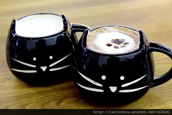 隔壁桌的杯子是白色貓咪,期望的一黑一白杯失敗Q_Q,我們得到兩隻黑貓