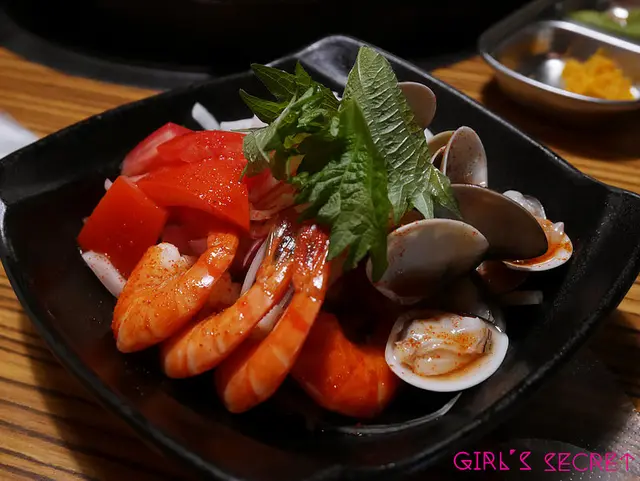 裡面有很幾隻蝦蝦和花枝、蛤蠣跟一些涼拌的蔬菜