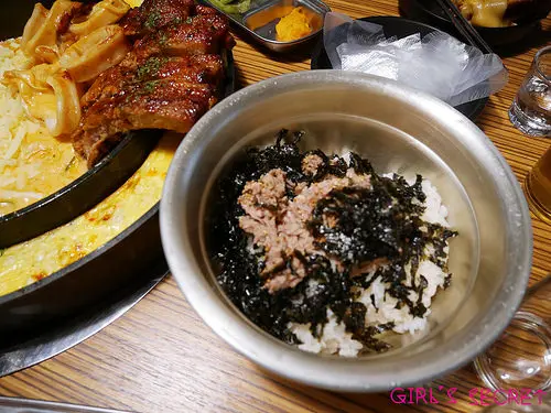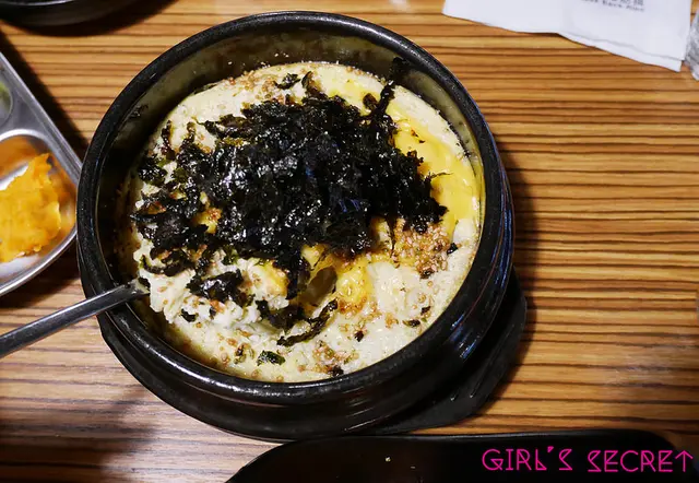 韓式蒸蛋,上面鋪著起司和滿滿的海苔絲還白芝麻