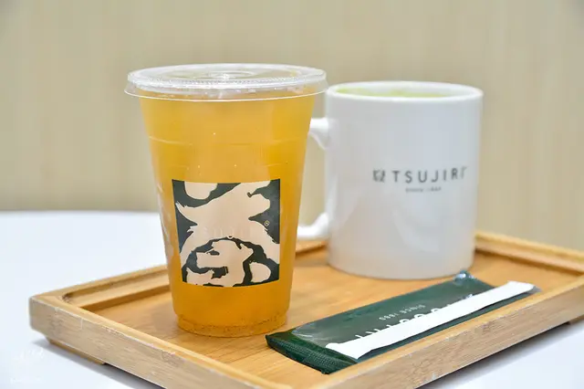 喝起來淡淡的抹茶香中透著柚子清爽果香口感,很清爽解膩。