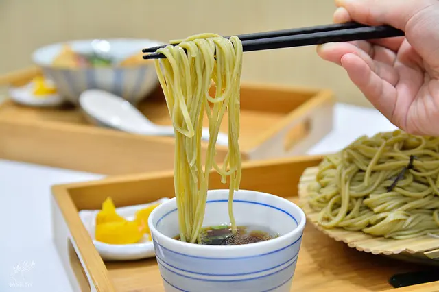 店家說綠茶蕎麥麵是使用日本進口無農藥茶粉製作、無添加色香料,吃起來口感軟Q,綠茶味道不重,味道簡單清爽很適合夏日,我和另外兩位朋友都覺得還不錯。