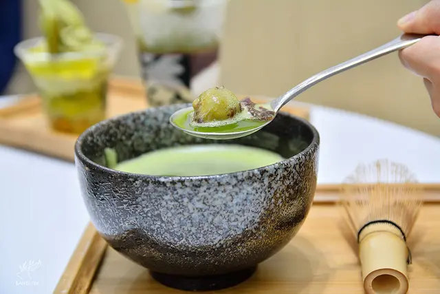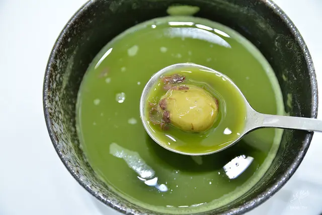 使用餐點內容中的御抹茶搭配紅豆與白玉,御抹茶這次比起我之前在松山車站喝的表現好一些,除了上方的泡沫並不會刷得太大外,因為加入紅豆關係整體較為順口。