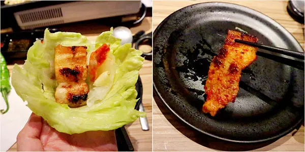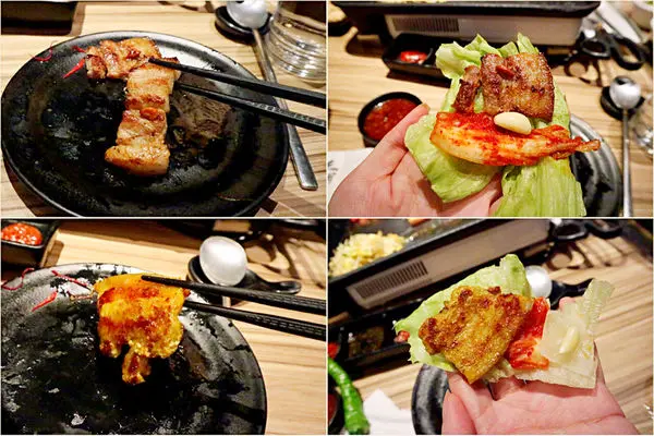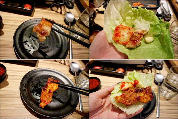 生菜包肉再加點泡菜、蒜頭,真是無敵呀