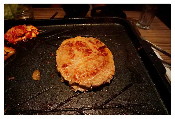 放上鐵板兩面煎烤成金黃色,帶點焦香