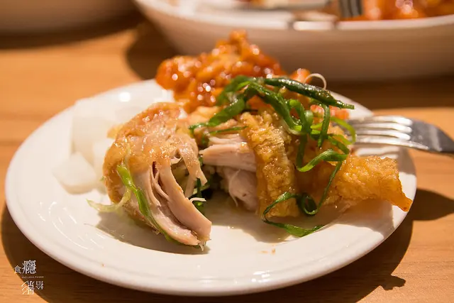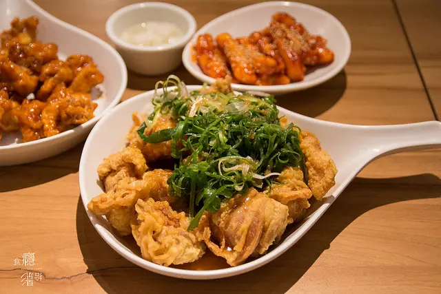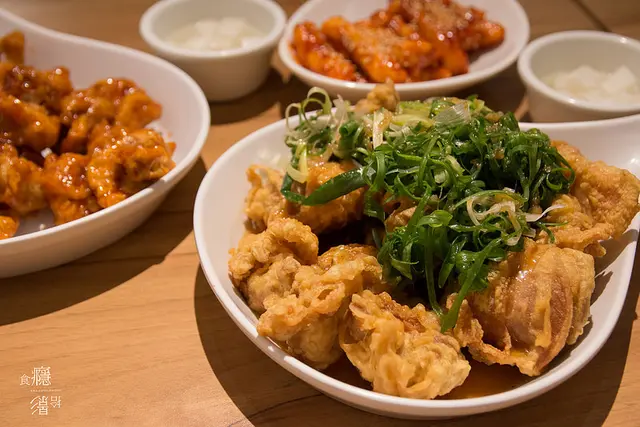 我喜歡用青蔥搭配炸雞來品嚐,而炸雞微酸的淋醬也較清爽一些,所以吃起來不容易感到油膩。