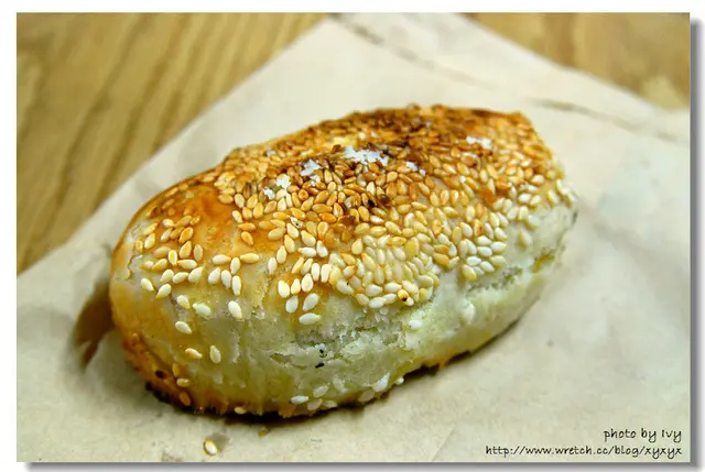 甜酥餅略呈長形,表皮上布滿白芝麻