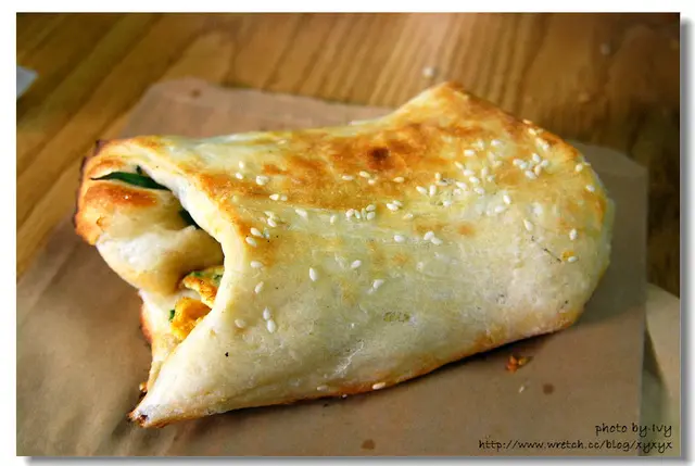 需要厚餅夾蛋的再將厚餅切開、夾入蔥蛋