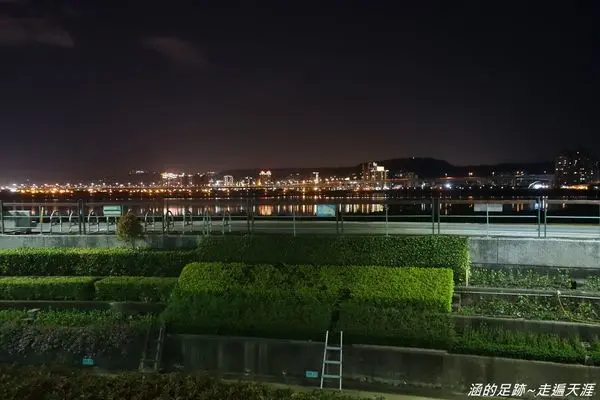 從河岸美食看過去的景色,對岸的燈光倒映在河面上,好美啊!