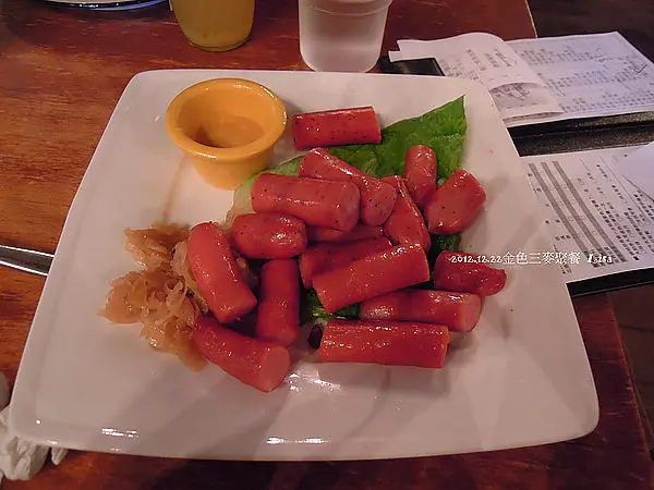 吃起來應該是統稱的德國香腸,德國香腸的口感一直都很好,可能是因為羊腸的外表使得吃起來很脆,不過金色三麥的這個香腸吃起來其是跟小七的很像,但如果依價位來說我會選擇小七,這裡的分量真的好少喔!