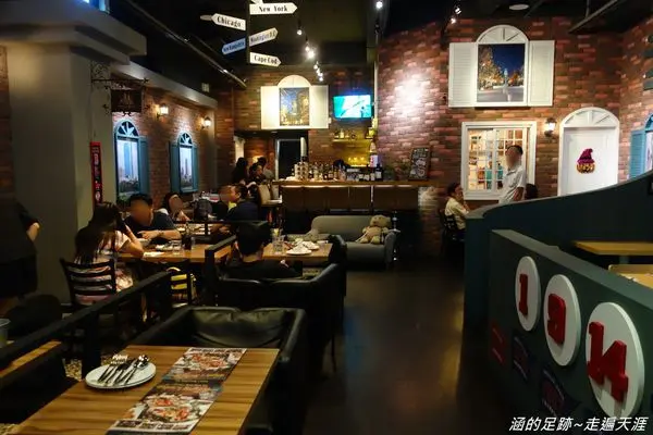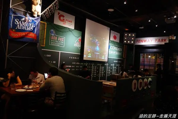 牆上的大螢幕播放著運動比賽,好像瞬間來到美國一樣。