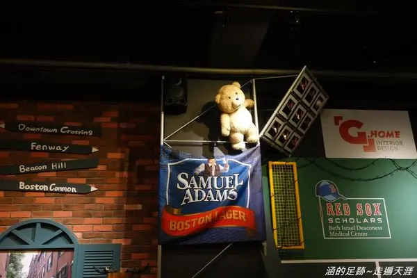 店裡用了很多波士頓的元素,有許多波士頓紅襪隊的裝飾,還有可愛的熊麻吉。