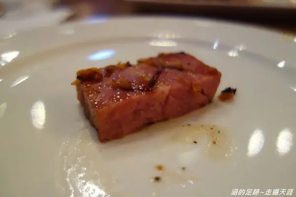 切開後是美麗的粉紅色卻不見血,所有的肉汁都完整的保留在裡面,肉好軟嫩、好多汁啊!