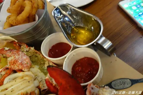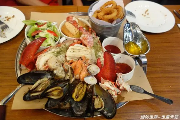 波士頓龍蝦的部分有兩種選擇,只有龍蝦($1300)或是選擇豪華龍蝦海鮮盤($1880)。海鮮盤的部分除了龍蝦外,還包含淡菜、日本干貝、白蝦、墨魚、大蛤。