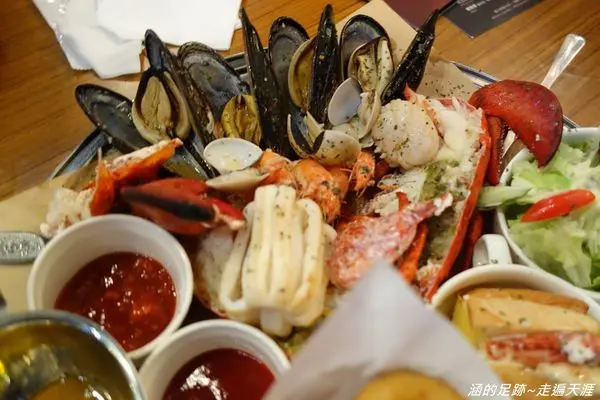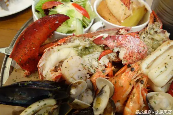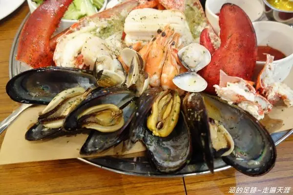 裡面有一隻波士頓龍蝦、淡菜、干貝、白蝦、蛤仔、墨魚。