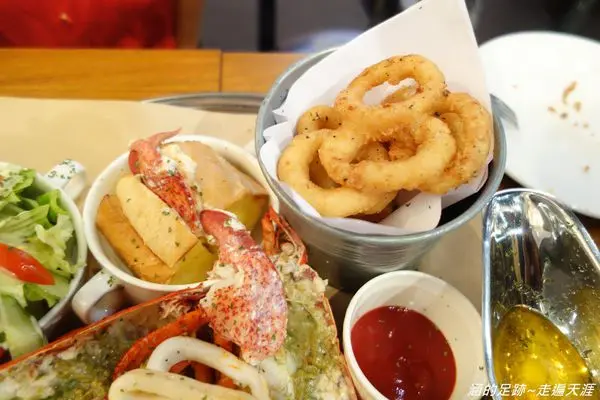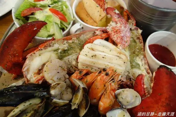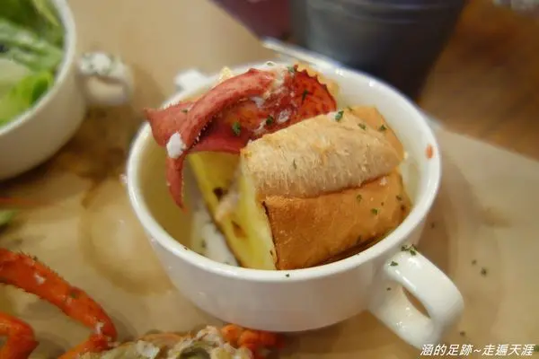 麵包的部分是龍蝦潛艇堡,會把水煮龍蝦的大螯放一隻到潛艇堡裡。