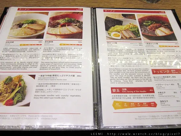 這回應該是之前看了不少負面評價所以預防針打的比較凶,所以實際走一遭覺得也沒到那麼差勁,不過仍有改善的空間,每個人對於好吃定義不同,我對一風堂沒什麼愛,無關道地與否的問題,而是不合口味(尤其是湯的口感),覺得有去體驗過就好,將來寧可跑去近點的樂麵屋,至少個人感覺各方面差距不是很大,又可以加麵加到開心為止,還不收莫名其妙的服務費。