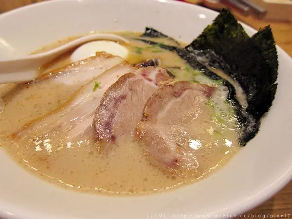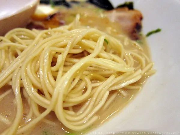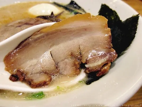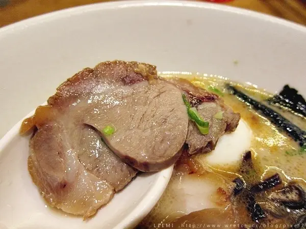 這碗湯稠度不高但喝起來有種奇怪的混濁感,好似有粉體附著在嘴巴裡相當詭異,也不是沒有吃過湯頭更濃郁的拉麵店,但唯有一風堂的豚骨湯頭如此,雖然湯本身的味道沒有想像的糟,鹹度夠也不會太過,但粉粉的這點很莫名。