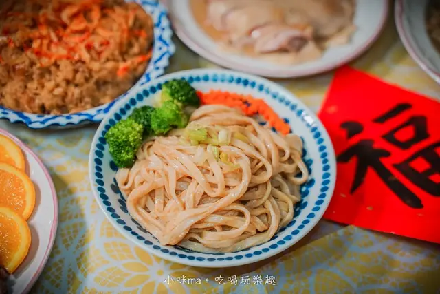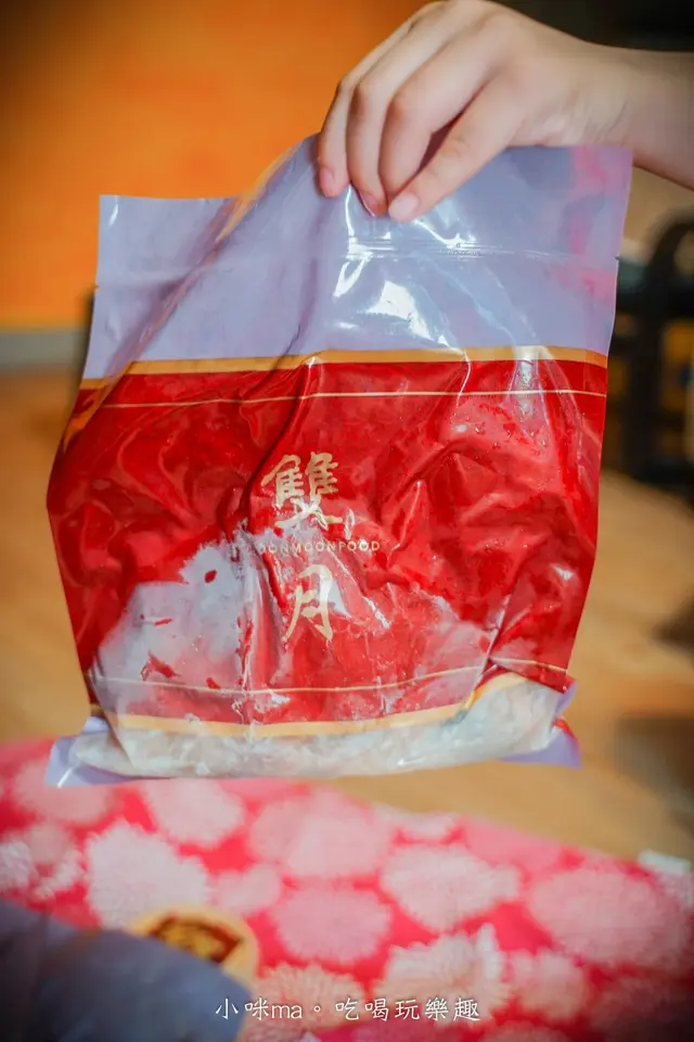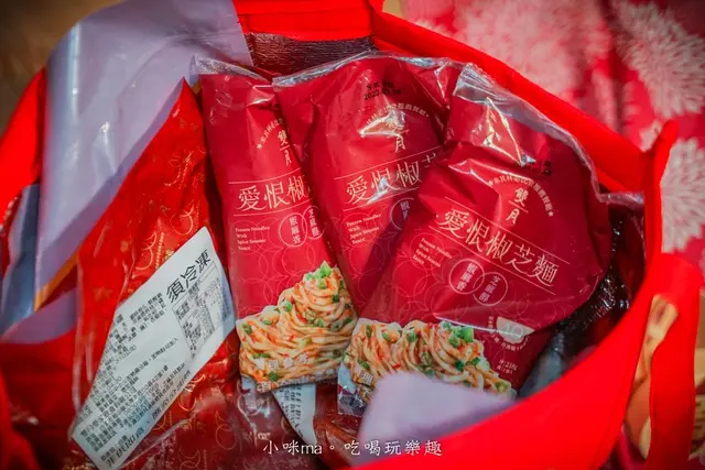 第一次看到年菜組合還幫你把主食準備好,裡面搭配的是雙月的人氣商品愛恨椒芝經典麵,他就跟乾拌麵一樣,但麵條是熟的再急速冷凍,只要水滾後麵條下去拌個幾秒鐘就能起鍋,再跟特調雙醬混合,一碗香噴噴的主食馬上上桌