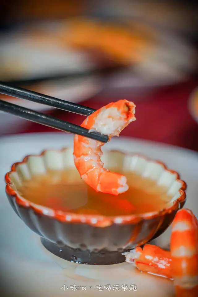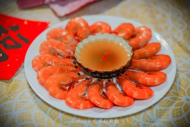 這道只要完全解凍就能上桌,嚴選古早釀造的花雕酒下去浸泡,每隻蝦子都吸足花雕酒迷人香氣,記得花雕酒湯汁一定要留下來,到時候還可以用蝦子沾著吃更夠味