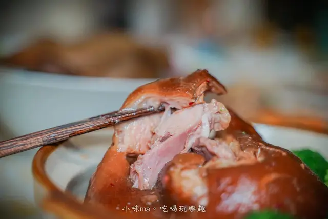 為了讓紹興醉雞腿的口感更好,醃漬好的雞腿直接急速冷凍,所以退冰後要自己切成一片片,只要完整解凍都很好切,嚴選國產新鮮公雞腿肉搭配埔里紹興酒醃製,一打開就能聞到醉人的香氣,仔細看旁邊都保留住滿滿的膠質,這道女生一定要多吃點啦