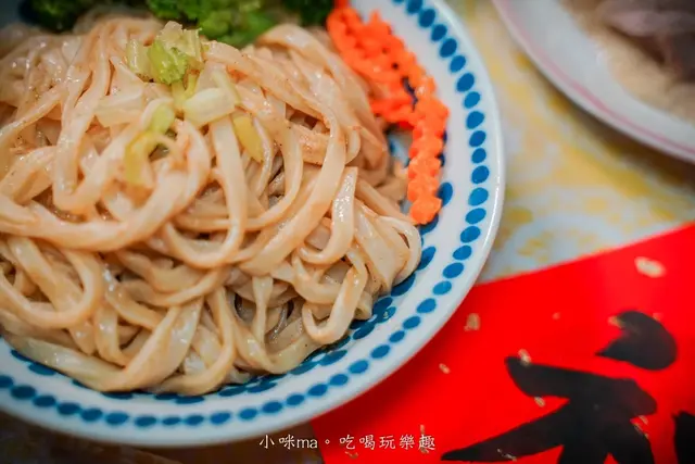 最特別的是雙月獨家的雙拌醬,研磨上等芝麻加上花椒辣椒油包,吃的到芝麻的香醇氣味,尾韻帶有一點點微麻輕辣的滋味,層次口感非常豐富,麵條Q彈有咬勁,再搭點青蔬提味,看似簡單的拌麵也能激出火花