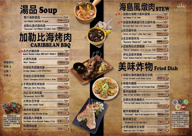 身為島嶼國家群的加勒比海群島有著豐富的海產資源,台灣更因此靠著採購當地海鮮而鞏固與中南美洲的邦交,所以來到ABV加勒比海餐酒館,千萬不能錯過道地的海鮮料理!而中南美洲的料理手法大量使用各種辛香料,在味覺上有著鮮明的香辣感,非常適合愛吃重口味又敢吃辣的人~
